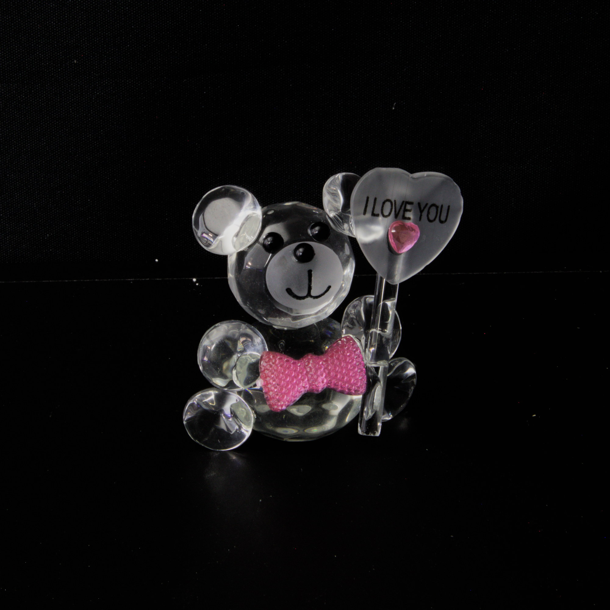 This charming glass teddy bear holding an “I Love You” heart is a sweet and meaningful way to express your feelings. Made from clear glass that gently reflects light, the figurine is decorated with a delicate pink bow tie and a small pink heart, giving it a soft romantic touch.